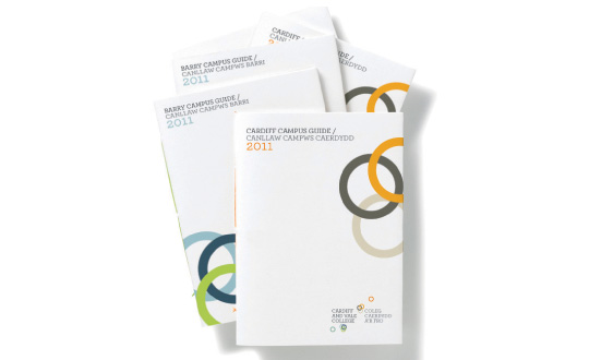 Pitch work submitted to Cardiff and Vale College, who provide further education and training over 8 campuses / venues, covering a vast area right across Cardiff and Barry in South Wales. This concept is a subtle reference to each campus / venue of Cardiff and Vale College. With each signified by its own colour that can be used across the college literature and branding, either jointly or a focused publication specifically for each venue. For example; on the business cards, an employee’s name and contact information can be highlighted in the corresponding colour to their campus.